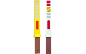 Made of tough, impact-resistant thermoplastic body, reflectorized on either side using florescent yellow prismatic sheeting. 3M Median Marker is a highly durable reflective product for medians. Designed to take the rigors of natural weathering, the product makes the median extremely visible thereby preventing accidents and saving invaluable lives on roads.